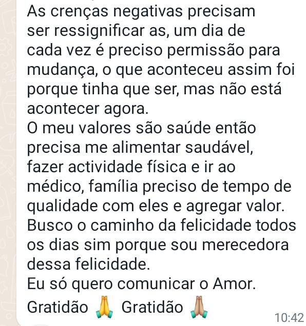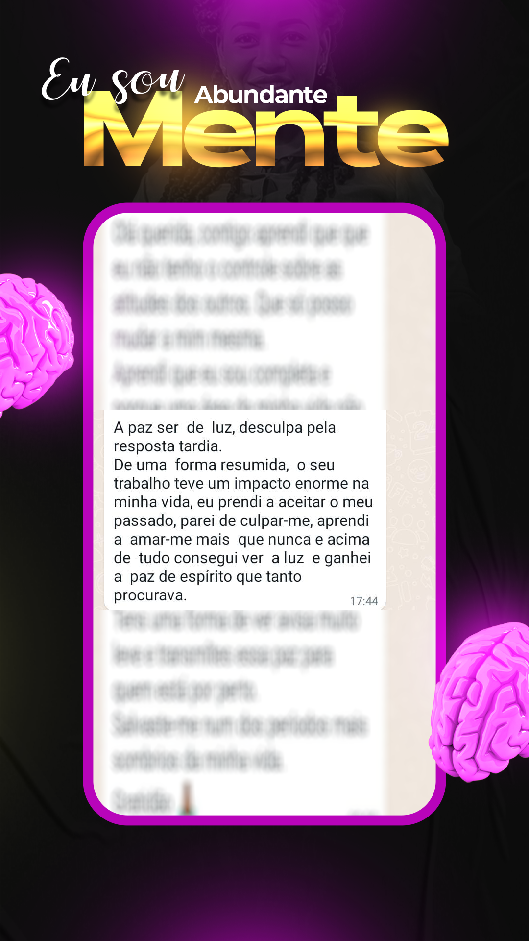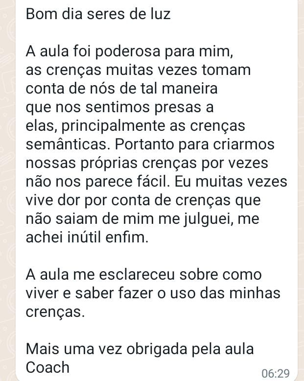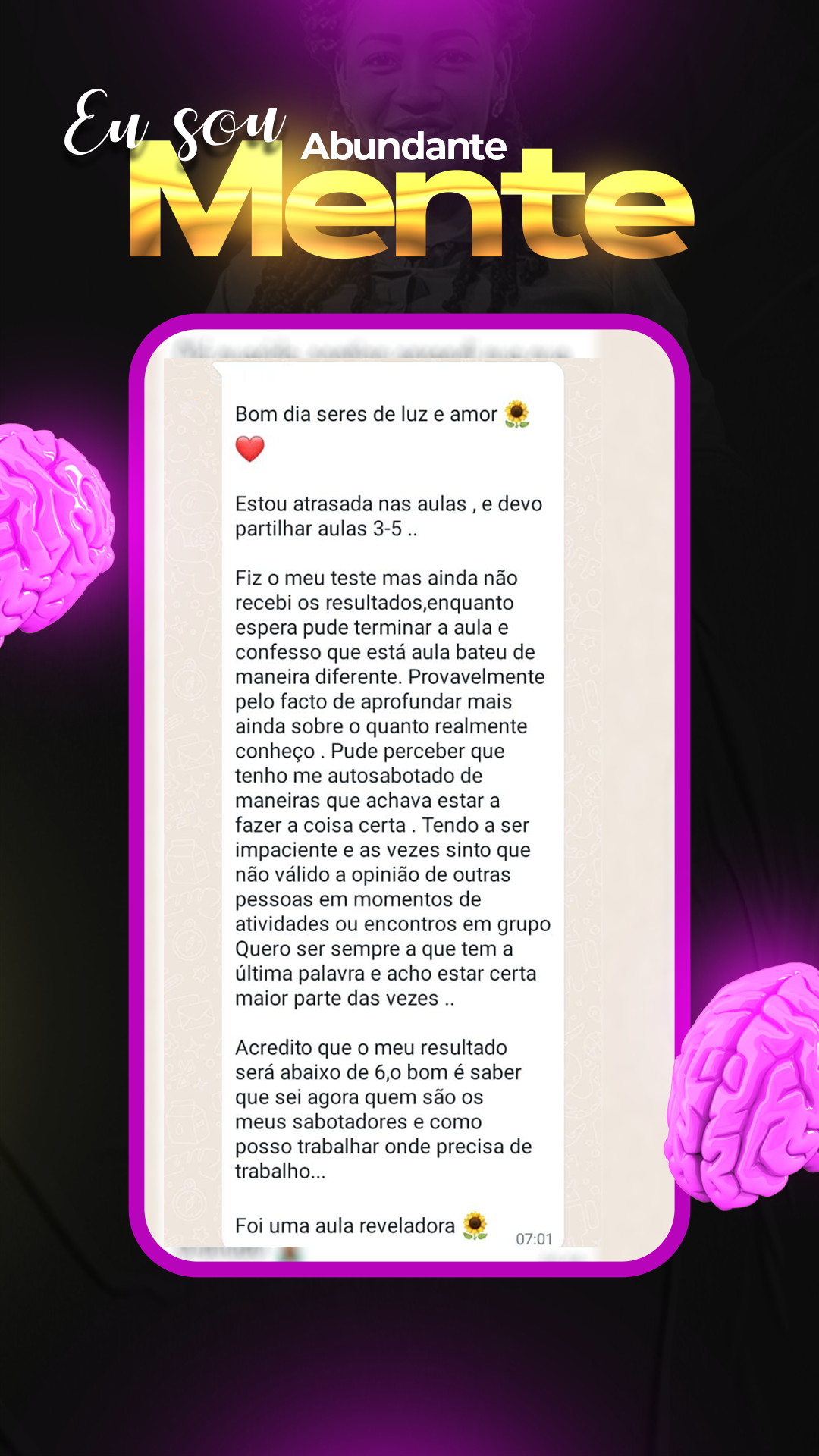 Terás uma grande mudança de mentalidade e visão, pois irás aprender a lidar com as crenças limitantes que autossabotam-te.